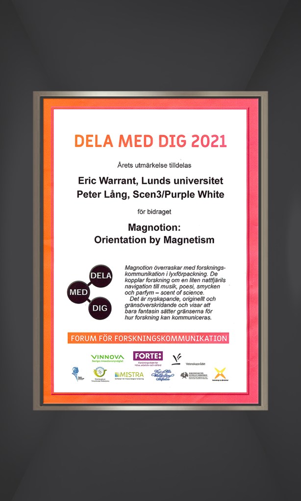 “Magnotion surprises with research communication in luxury packaging. They link research on a small moth’s navigational skills to music, poetry, jewelry and perfume – the scent of science. It is innovative, original and boundary pushing and shows that only the imagination sets the limits for how research can be communicated. ”